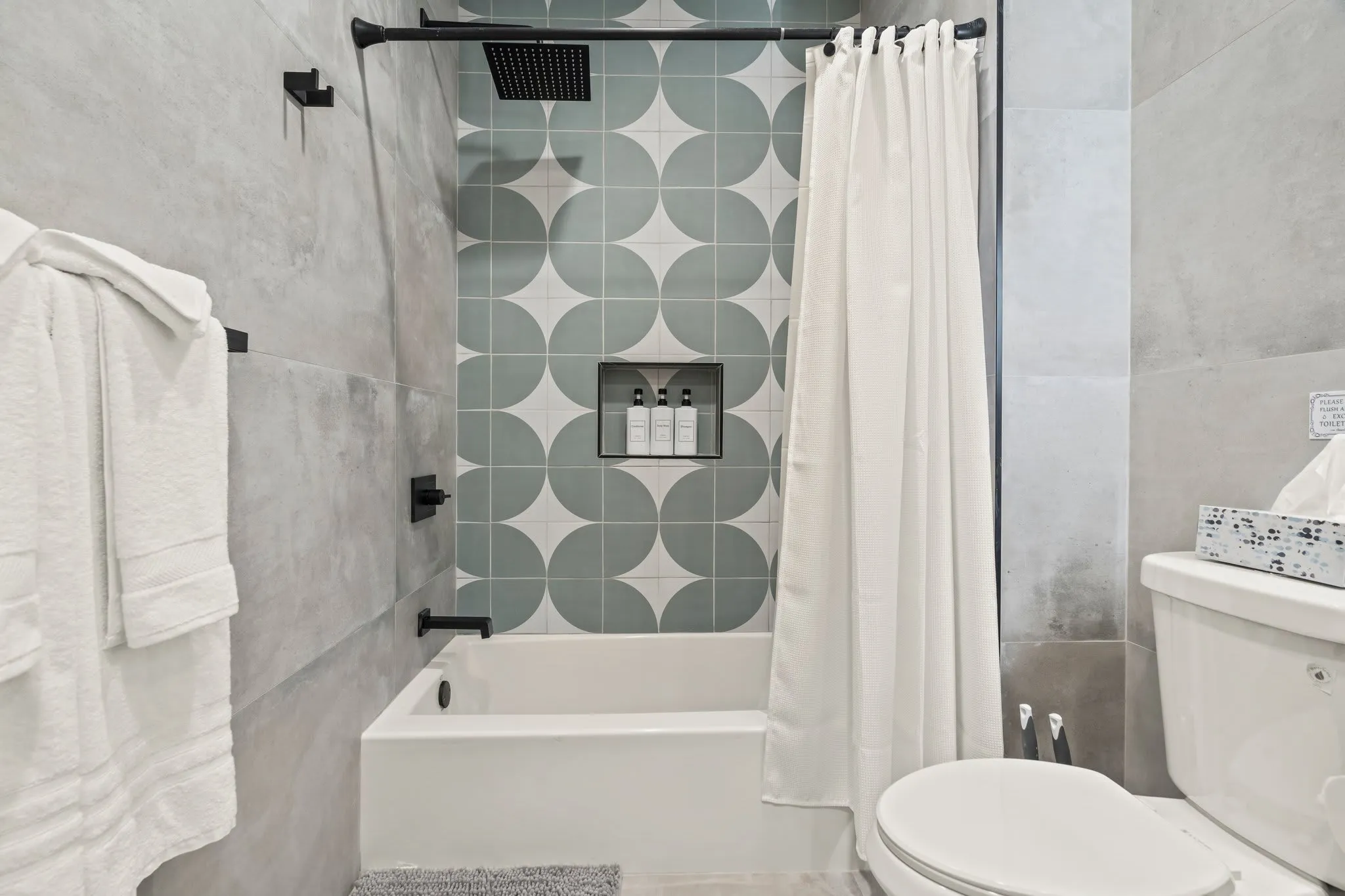 -Shampoo, conditioner, and bodywash are supplied